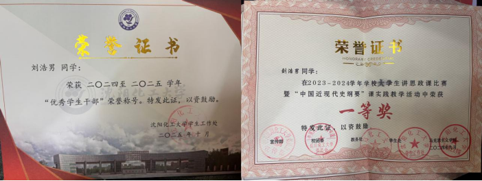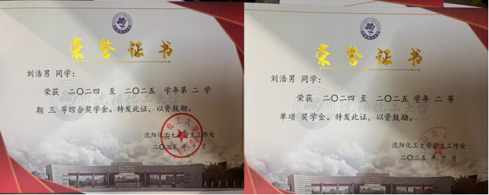 在学习上,刘浩男目标清晰,勤奋刻苦。面对化学专业的理论与实验课程,她善于归纳总结,乐于在实验中发现问题,验证猜想。自入校以来,她的学业成绩稳步提升,多次跻身班级前列,并获评三等奖学金。作为员工干部,她常在课余时间组织学习交流,帮助同学梳理难点,带动形成互帮互助的学习氛围。在她看来,求知不仅是获取知识,更是锤炼思维与提升解决问题的能力。